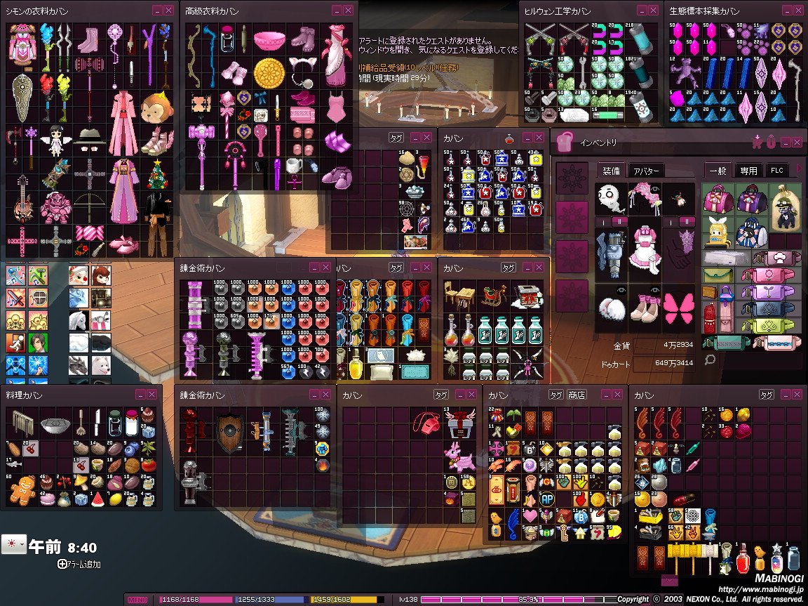 ただし全部のインベを開くと画面が埋まりますね/(^o^)\