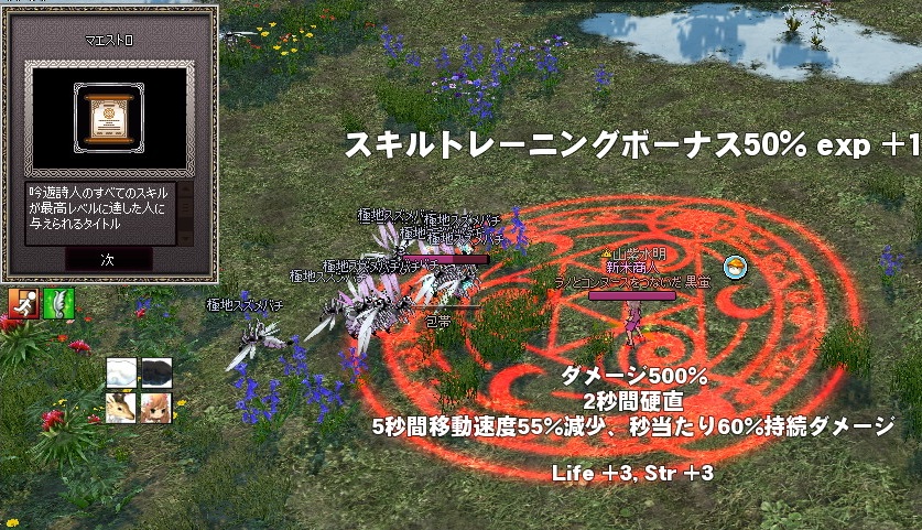 トップページ> マビノギ> マエストロ(゚∀゚)キターヨ! 2016年02月03日 マエストロ(゚∀゚)キターヨ! ルエリにも遊びに行かず半分倉庫化している黒蛍キャラの演奏トレをしておりましたw演奏トレ2倍イベント期間ギリギリで【マエストロ】タイトルが取れましたよ!(*゚Д゚)ヤタ!↑上のSSはトゥアンの魂を召喚してブリューナクスキルトレーニングをしたものトレ細工同様にトゥアンの囁き効果がブリューナクのトレにも乗るんです!ほとんど1にした後に気が付いたよwwwwwwwwいつものパターンだった\(^o^)/ 「マビノギ」カテゴリの最新記事 タグ :#演奏#トレーニング#ペット#トゥアンの魂 トップページ> マビノギ> マエストロ(゚∀゚)キターヨ! < 前の記事次の記事 > スパムコメント対策のため海外からの書き込みを制限しております コメント コメントフォーム 名前 コメント 評価する リセット リセット 顔 星 投稿する 情報を記憶 トラックバック
