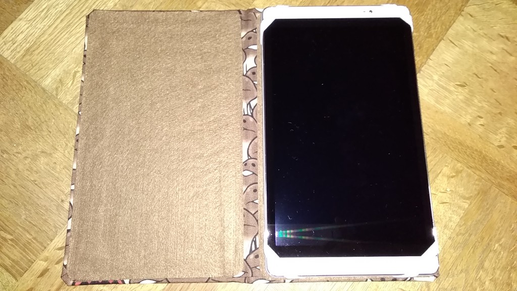 タブレットのブック型ケースを作ったのです!!☆-(ノ゚Д゚)八(゚Д゚ )ノイエーイ止める部分をどうするか悩んだのですが、