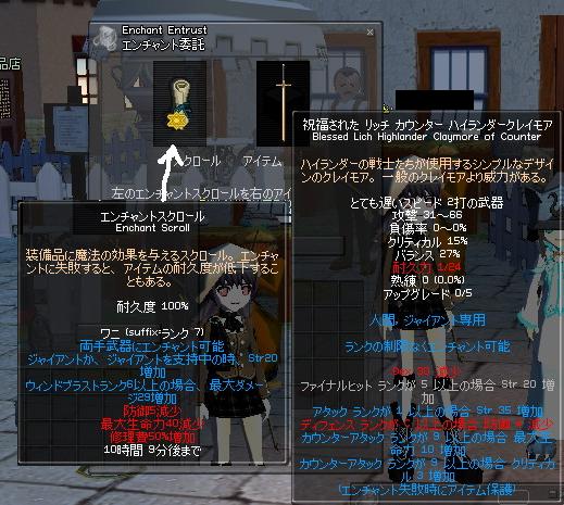 先週リッチを一発でつけたあとに水玉→レイヴン→予言で2回くらい失敗して保護P代がなくなったとのことで一旦お休みしてた廃モアのエンチャ2回戦